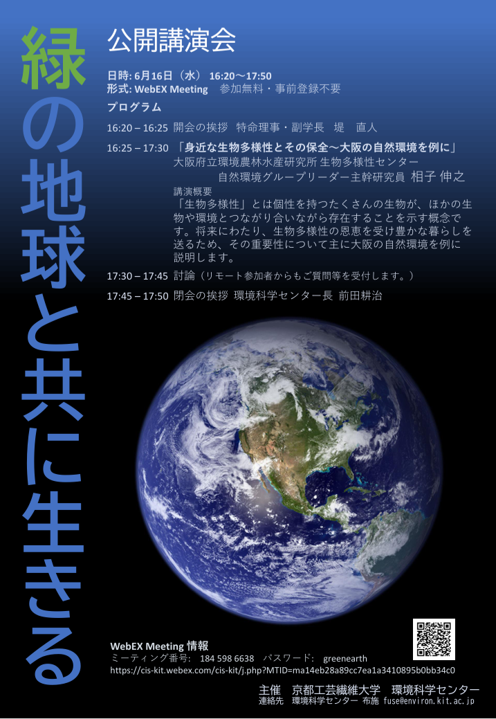• 環境科学センター第26回公開講演会 -緑の地球と共に生きる- 2021年6月16日